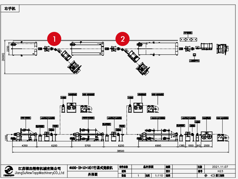 | Proses Ekstrusi Direkomendasikan: Ekstruder kawat inti 60mm 25mm | Proses Perakitan 1. Memutar Tunggal Direkomendasikan: Putaran tunggal kantilever 1000mm 2. Pemasangan Kabel Direkomendasikan: Mesin terdampar sangkar 400mm-500mm | Proses Ekstrusi Selubung Luar Direkomendasikan: Ekstruder selubung luar 70mm |
